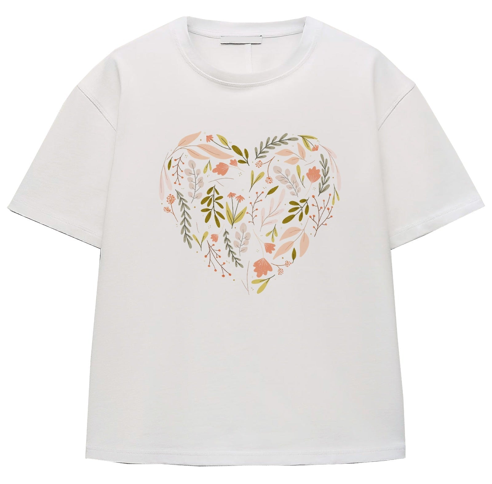 Material: 100% algodón peruano, camiseta color BLANCO estampado Love garden La modelo usa talla S, Hecho en Medellín Colombia